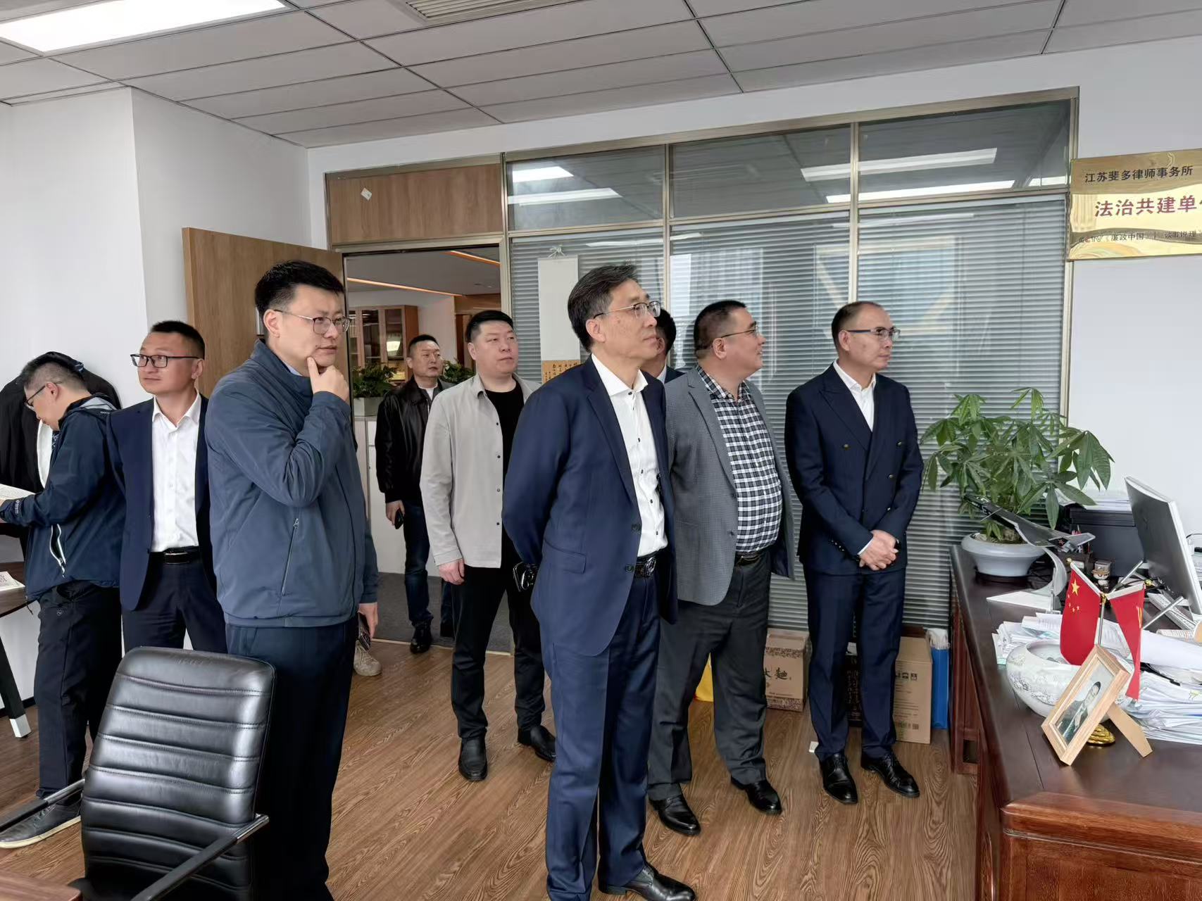 为加强律师行业交流协作,推动两地律师行业高质量发展,2026年4月23日,连云港市律师协会会长高海洋、副会长范江华、青年律师工作委员会主任徐国庆、劳动与社会保障法律业务委员会主任张成柱一行莅临江苏斐多律师事务所开展考察交流。南京市律师协会副会长周昕明、工作人员鲁鹤然陪同考察。江苏斐多律师事务所主任周东生、执行主任黄彪、党支部副书记汤咏康热情接待并参加座谈会。