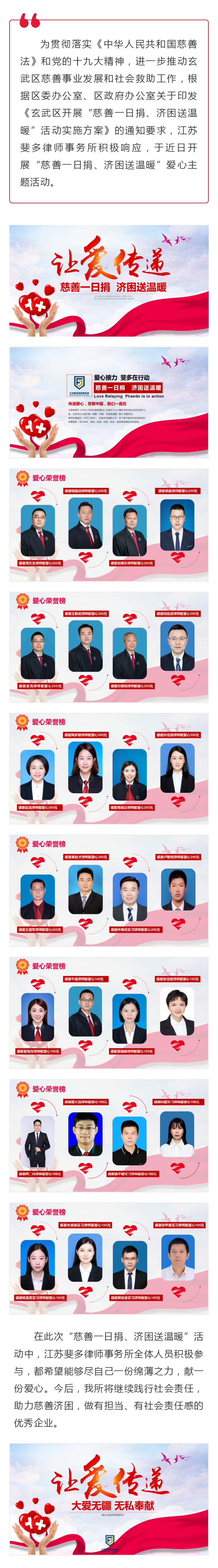 江苏斐多律师事务所积极开展“ 慈善一日捐、济困送温暖 ”活动