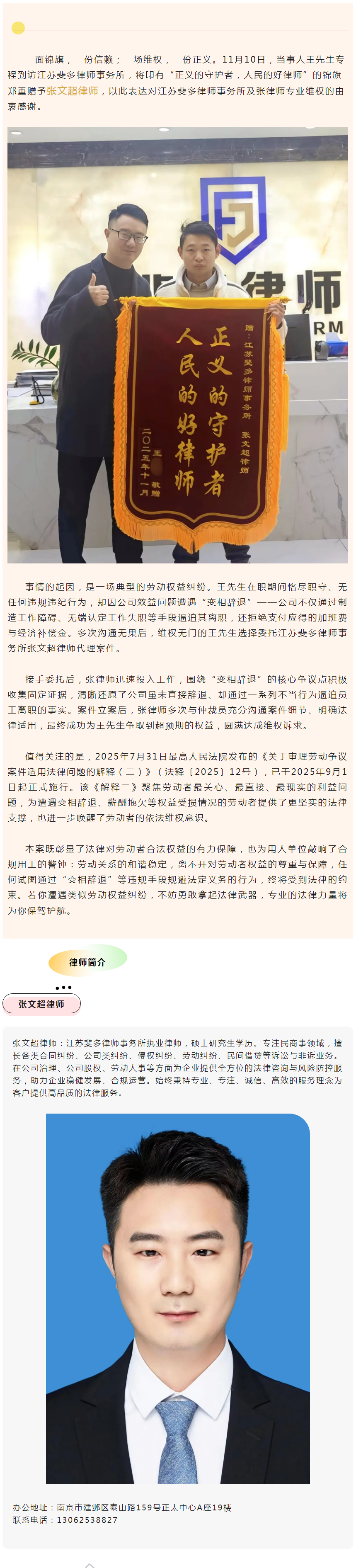 斐多荣誉 | 我所张文超律师获当事人赠锦旗致谢