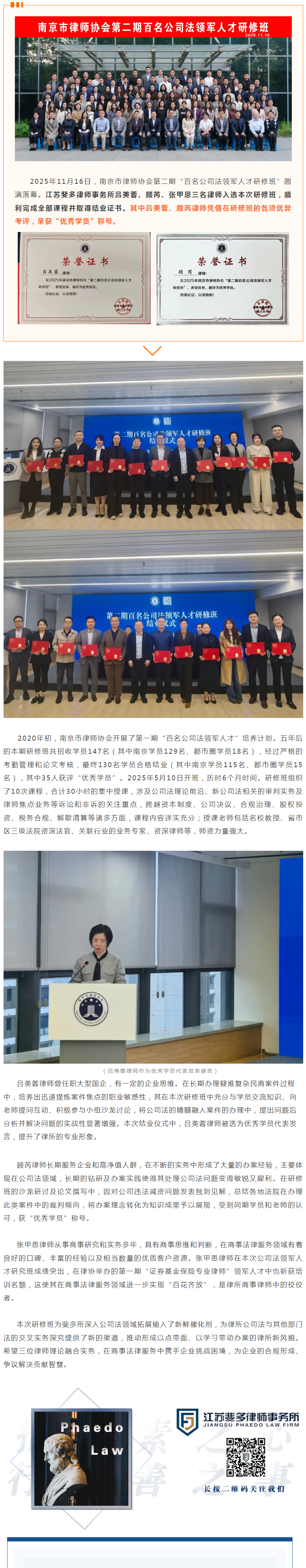 斐多荣誉|我所律师在“百名公司法领军人才研修班”结业,获“优秀学员”称号并代表发言