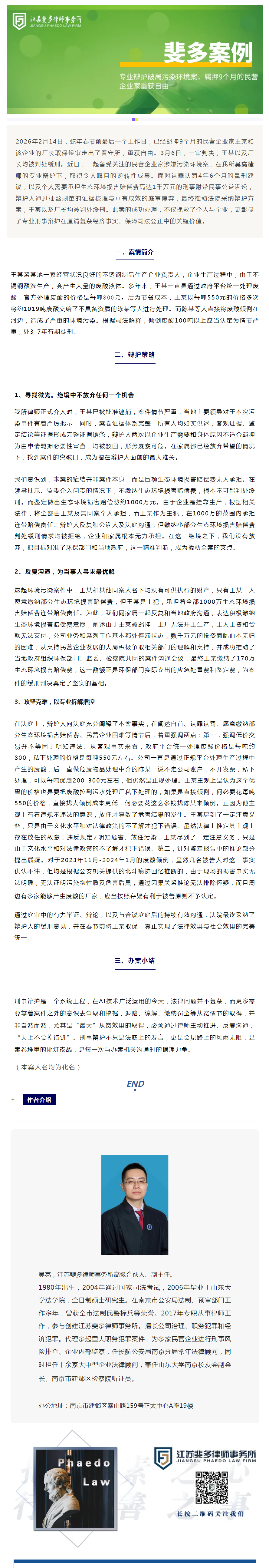 斐多案例 | 专业辩护破局污染环境案,羁押9个月的民营企业家重获自由