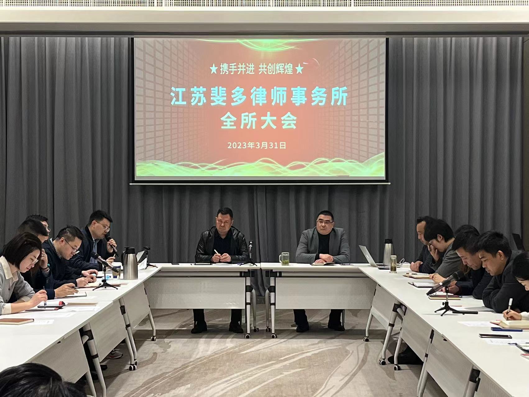 2023年3月31日下午,江苏斐多律师事务所在正太中心4楼会议室召开我所2023年第一季度全所大会。会议由联席会主任张晓东律师主持,江苏斐多律师事务所全体执业律师、实习律师及行辅人员共近90人分别在线下和线上参加了本次会议。
